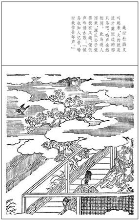 思念往昔,不胜愁叹。只有访晤故人,方得安慰寸心。惟旧恨虽消,而新愁又生。趋炎附势,乃世之常态。因此可共话往昔之人,寥若晨星。何况冷冷清清,无可消遣,怎生是好?”女御听了这番话,深感世变无常,人生多苦,那沉思冥想的神色异常悲哀。大约是人品优越之故吧,样子特别可怜。女御吟道: