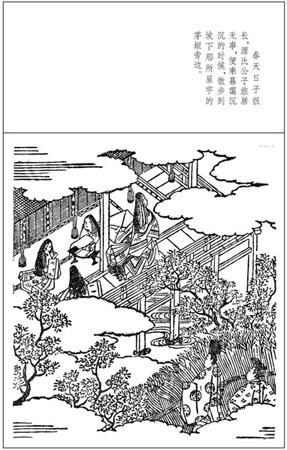 可否相烦通报一声?”侍女答道:“公子明知此间并无可接受此诗之人,教我向谁通报呢?”公子说:“我呈此诗,自有其理,务请谅解!”侍女不得已,入内通报了。那老尼姑想:“啊,这源氏公子真是个风流人物。他以为我家这孩子已经知情懂事了么?可是那‘细草’之句他何由知道呢?”她怀着种种疑虑,心情缭乱。但久不答诗是失礼的,便吟道: