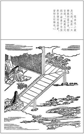 从宇治入京,道里甚遥,山路险峻。二女公子看到这光景,想起匂亲王过去难得来访,她一向恨他薄情,今日始知确也难怪,对他稍稍谅解。初七夜的月亮清光皎洁地升上天空,四周云霞灿烂。二女公子从未远行,看了这夜景不免痛苦,终于悲伤起来,独吟云: