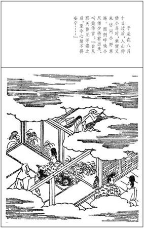 中将辞了小野草庵,便上山去访问僧都。僧都奉他为稀客,和他畅谈世事。这天晚上他就在那里宿夜,请几位声音庄严的法师诵经,又共奏弦管,直至天明。他和那个当禅师的弟弟详细谈论种种事情,便中说道:“此次途经小野,曾赴草庵访问,心中无限感慨。出家离世之人,犹有这等风雅情怀,真是难得的啊!”后来又说:“那时刮起一阵风来,把帘子吹开,我从帘隙窥见一个长发美人。大概她怕外面有人看见吧,立刻回身入内,照那后影看来,决不是一个普通侍女。这等地方养着美貌女郎,很不相宜。她朝夕见惯的都是尼僧,久后自然和她们同化,这实在是不好的事。”禅师答道:“听说这人是她们今春赴初濑进香时由于某种奇缘而找到的。”这禅师并未亲自目击此事,所以不能详述情状。中将说道:“这真是可悲的事。不知她是怎样的一个人。想必是身逢忧患,心怀厌世,因而隐身在那荒僻之处的吧。倒很像是古代小说中的人物呢。”